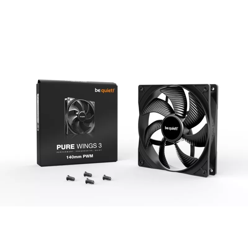 Pure Wings 3 140mm PWM , Number of fans 1 , Nominal voltage 12 V , Air flow 57.4 cfm , Noise level, max 21.9 dB , Colour Black , Dimensions 140 x 140 x 25 mm