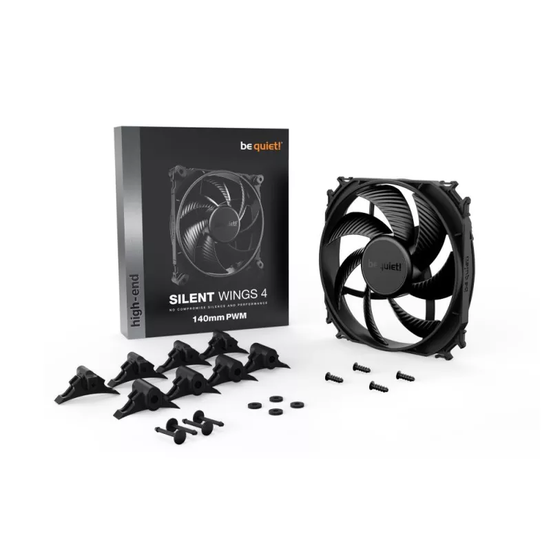 Silent Wings 4 , Number of fans 1 , Air flow 51.3 cfm , Noise level, max 13.6 dB , Colour Black , Dimensions 140 x 140 x 25 mm