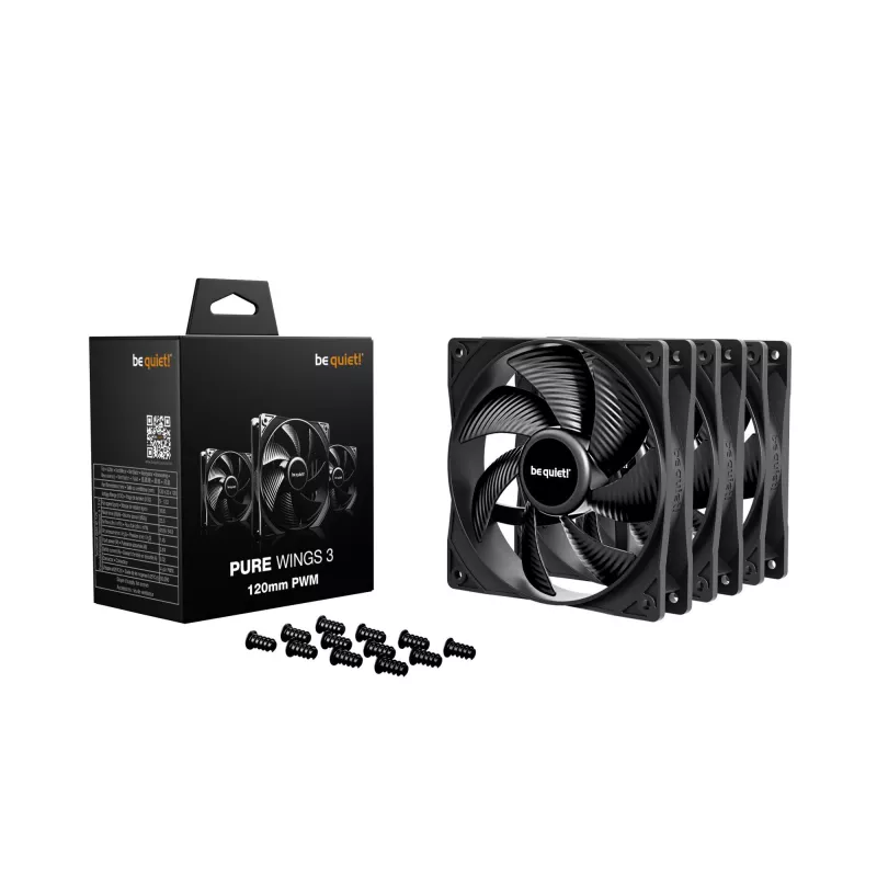 PURE WINGS 3 , Number of fans 3 , Air flow 49.9 cfm , Noise level, max 25.5 dB , Colour Black , Dimensions 120 x 25 x 120mm