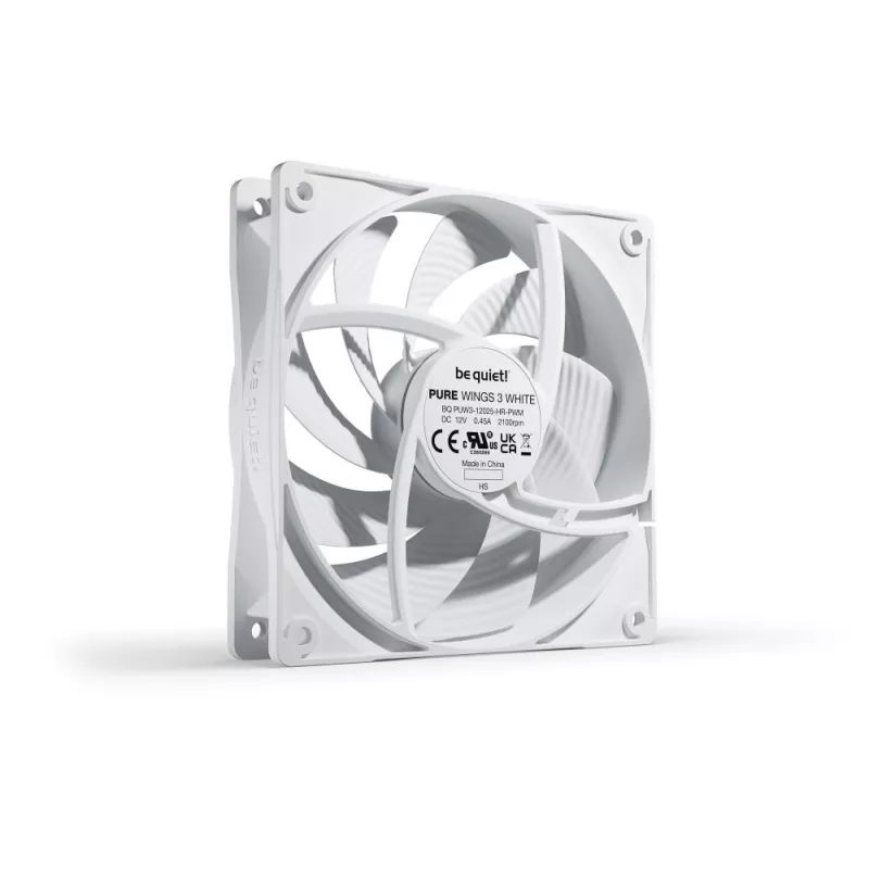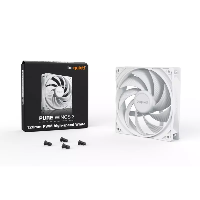 - BE QUIET! PURE WINGS 3 120MM PWM HIGH-SPEED WHITE. TYPE: FAN, FAN DIAMETER: 12 CM, ROTATIONAL SPEED (MAX): 2100 RPM, AIRFLOW: 101.2 M /H, MAXIMUM AIR PRESSURE: 2.41 MMH2O, BEARING TYPE: RIFLE BEARING. VOLTAGE: 5 - 13.2 V. WIDTH: 120 MM, DEPTH: 120 MM, HEI