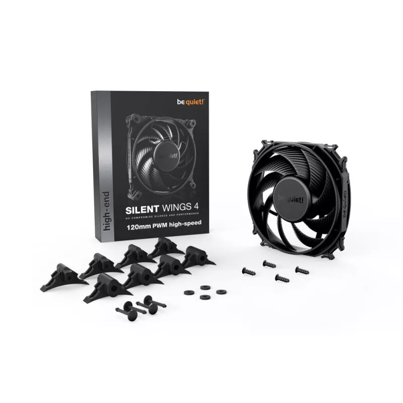 - BE QUIET! SILENT WINGS 4 | 120MM PWM HIGH-SPEED. TYPE: FAN, FAN DIAMETER: 12 CM, ROTATIONAL SPEED (MAX): 2500 RPM, AIRFLOW: 130.31 M /H, MAXIMUM AIR PRESSURE: 3.96 MMH2O, BEARING TYPE: FLUID DYNAMIC BEARING (FDB). VOLTAGE: 5 - 13.2 V. WIDTH: 120 MM, DEPTH