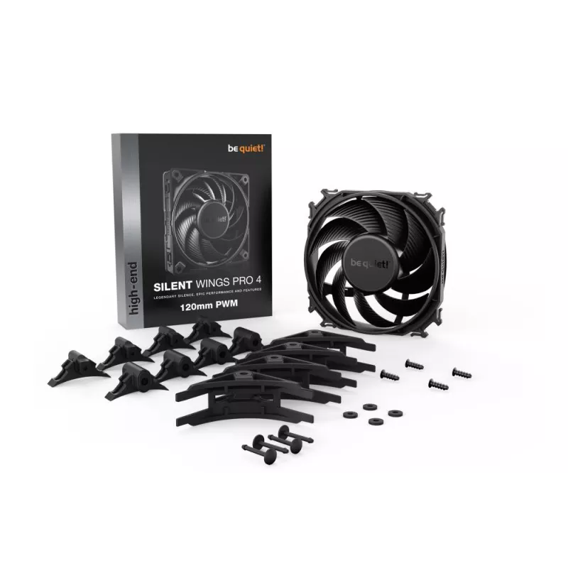 - BE QUIET! SILENT WINGS PRO 4 | 120MM PWM. TYPE: FAN, FAN DIAMETER: 12 CM, ROTATIONAL SPEED (MAX): 3000 RPM, AIRFLOW: 142.5 M /H, MAXIMUM AIR PRESSURE: 5.31 MMH2O, BEARING TYPE: FLUID DYNAMIC BEARING (FDB). VOLTAGE: 7 - 13.2 V. WIDTH: 120 MM, DEPTH: 120 MM