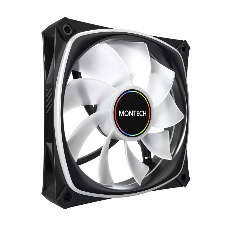 - MONTECH RX120 PRO. TYPE: FAN, FAN DIAMETER: 12 CM, ROTATIONAL SPEED (MIN): 600 RPM, ROTATIONAL SPEED (MAX): 1600 RPM, MAXIMUM AIR PRESSURE: 1.63 MMH2O, BEARING TYPE: HYDRO DYNAMIC BEARING (HDB). VOLTAGE: 12 V. PRODUCT COLOUR: WHITE