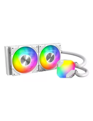 Model name HyperFlow ARGB 240 , 120 mm , Type All-in-one liquid cooler , Supported processor sockets LGA 1150 (Socket H3)/LGA 1151 (Socket H4)/LGA 1155 (Socket H2)/LGA 1156 (Socket H)/LGA 1200 (Socket H5)/LGA 1700/LGA 2011 (Socket R)/LGA 2066/Socket AM3/Socket AM4/Socket AM5 , Suitable location Processor , Maximum airflow 76.2 cfm , Airflow 129.5 m³/h , Pulse-width modulation (PWM) support Yes , Bearing type Fluid Dynamic Bearing (FDB) , Pump connector 4-pin , Pump motor speed 3100 RPM , Fan speed (max) 2200 RPM , Colour White , Radiator material Aluminum , Number of fans 2 fan(s) , Illumination LED Yes , Illumination colour Blue/Green/Red/Amber , LED connector type 3-pin , Fan connector 4-pin , Radiator height 120 mm