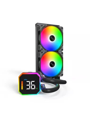 Model name HyperFlow Digital 240 , 120 mm , Type All-in-one liquid cooler , Supported processor sockets LGA 1150 (Socket H3)/LGA 1151 (Socket H4)/LGA 1155 (Socket H2)/LGA 1156 (Socket H)/LGA 1200 (Socket H5)/LGA 1700/LGA 2011 (Socket R)/LGA 2066/Socket AM3/Socket AM4/Socket AM5 , Suitable location Processor , Maximum airflow 96.27 cfm , Airflow 129.5 m³/h , Pulse-width modulation (PWM) support Yes , Bearing type Fluid Dynamic Bearing (FDB) , Pump connector 4-pin , Pump motor speed 3100 RPM , Fan speed (max) 2200 RPM , Colour Black , Radiator material Aluminum , Number of fans 2 fan(s) , Illumination LED Yes , Illumination colour Blue/Green/Red/Amber , LED connector type 3-pin , Fan connector 4-pin , Radiator height 120 mm