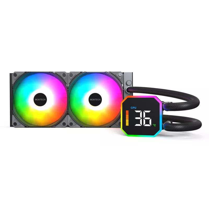 - MONTECH HYPERFLOW DIGITAL 240. TYPE: ALL-IN-ONE LIQUID COOLER, FAN DIAMETER: 12 CM, AIRFLOW: 129.5 M /H, MAXIMUM AIR PRESSURE: 96.27 MMH2O, BEARING TYPE: FLUID DYNAMIC BEARING (FDB). PRODUCT COLOUR: BLACK