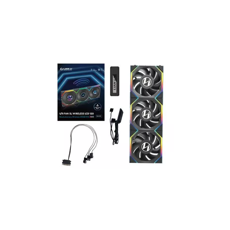 - LIAN LI UNI FAN SL WIRELESS LCD 120. TYPE: FAN, FAN DIAMETER: 12 CM, MAXIMUM AIR PRESSURE: 2.4 MMH2O, BEARING TYPE: FLUID DYNAMIC BEARING (FDB). VOLTAGE: 5 - 12 V. PRODUCT COLOUR: BLACK