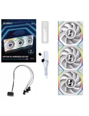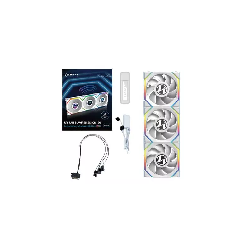 - LIAN LI UNI FAN SL WIRELESS LCD 120. TYPE: FAN, FAN DIAMETER: 12 CM, MAXIMUM AIR PRESSURE: 2.4 MMH2O, BEARING TYPE: FLUID DYNAMIC BEARING (FDB). VOLTAGE: 5 - 12 V. PRODUCT COLOUR: WHITE