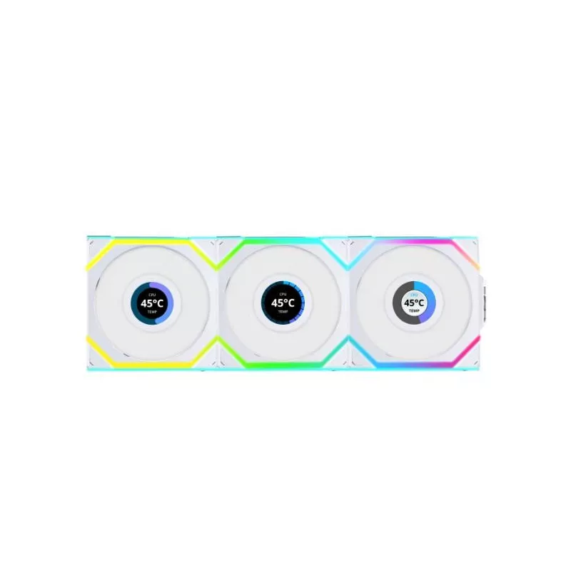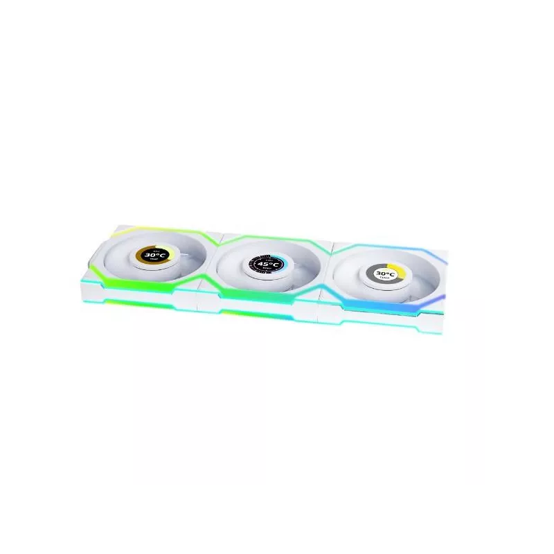 120 mm , Type Fan , Suitable location Computer case , Noise level (high speed) 29.5 dB , Maximum airflow 50.08 cfm , Bearing type Fluid Dynamic Bearing (FDB) , Fan speed (max) 1900 RPM , Colour White , Number of fans 3 fan(s) , Illumination LED Yes , Illumination colour Multi , Fan connector 4-pin , Fan controller Yes , Power consumption (typical) 2.64 W