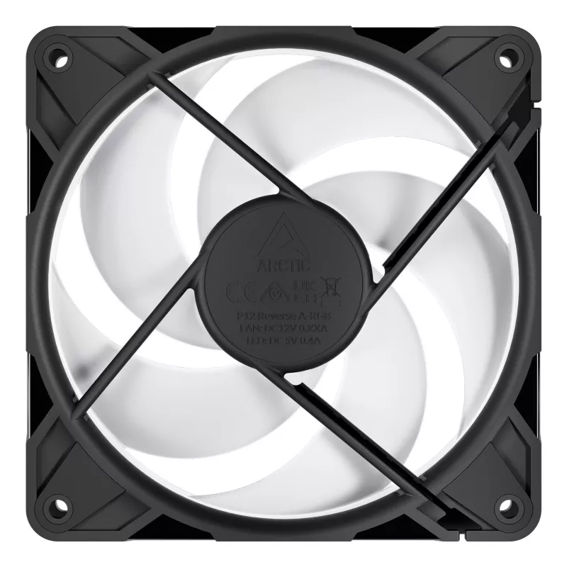 - ARCTIC FREEZER P12 PRO REVERSE A-RGB 120 MM A-RGB - PWM FAN WITH CABLE SPLITTER. TYPE: FAN, FAN DIAMETER: 12 CM, AIRFLOW: 124 M /H, BEARING TYPE: FLUID DYNAMIC BEARING (FDB). PRODUCT COLOUR: BLACK