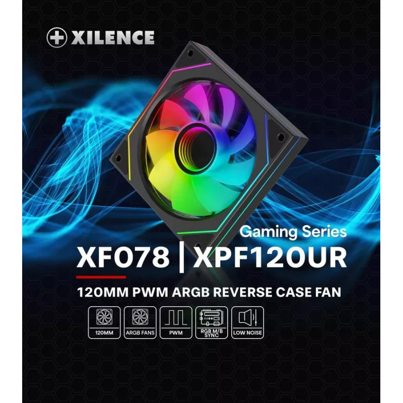 - XILENCE GAMING SERIES XPF120UR.ARGB. TYPE: FAN, FAN DIAMETER: 12 CM, ROTATIONAL SPEED (MIN): 500 RPM, ROTATIONAL SPEED (MAX): 1800 RPM, BEARING TYPE: HYDRAULIC. VOLTAGE: 7 - 13.2 V. WIDTH: 120 MM, DEPTH: 120 MM, HEIGHT: 25 MM. PRODUCT COLOUR: BLACK