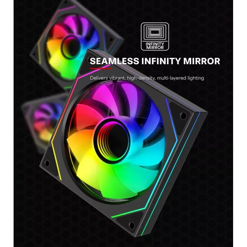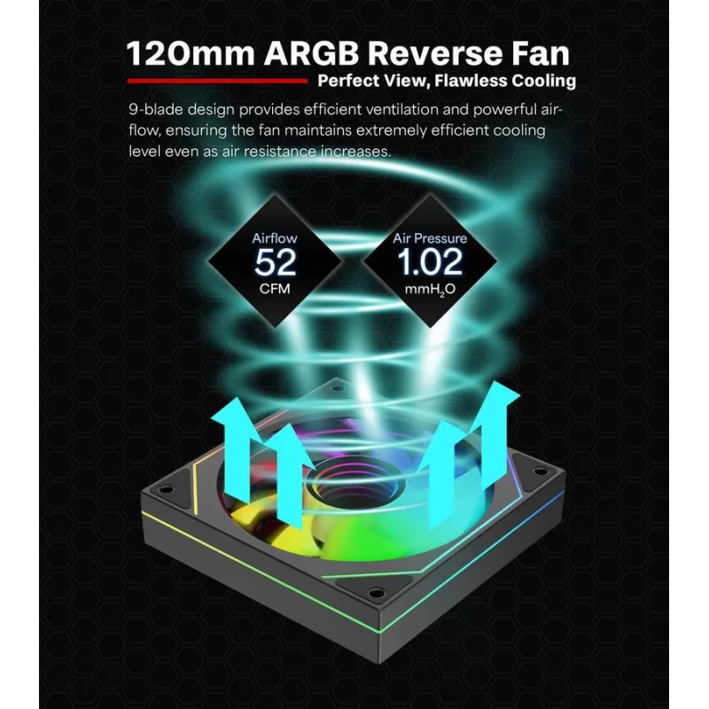 120 mm , Type Fan , Suitable location Computer case , Rotational speed (max) 1800 RPM , Noise level (high speed) 32 dB , Maximum airflow 52 cfm , Pulse-width modulation (PWM) support Yes , Bearing type Hydraulic , Colour Black , Number of fans 1 fan(s) , Illumination LED Yes , LED connector type 3-pin , Illumination colour Multi , Fan connector 4-pin , Weight 155 g