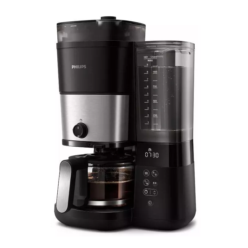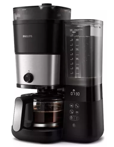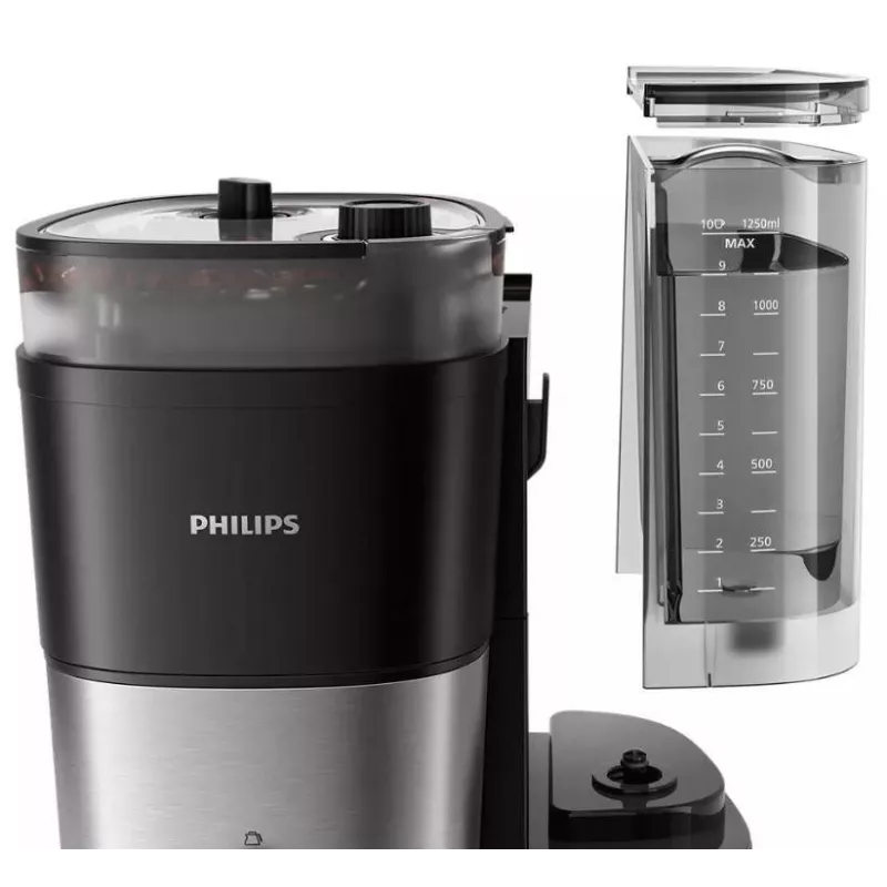 Coffee type Beans , Coffee brewer type Drip , Coffee machine features Cup volume adjustment/Coffee grinding/Adjustable grinding/Removable brew unit/Removable water reservoir/Water level indicator/Pre-brewing/Pre-heating/Anti-drip system/Temperature settings/Timer/Display/Auto-power off , Water capacity 1.25L , Colour Black / Silver , Dimensions 277X245X434 mm , Product Net Weight 5 kg