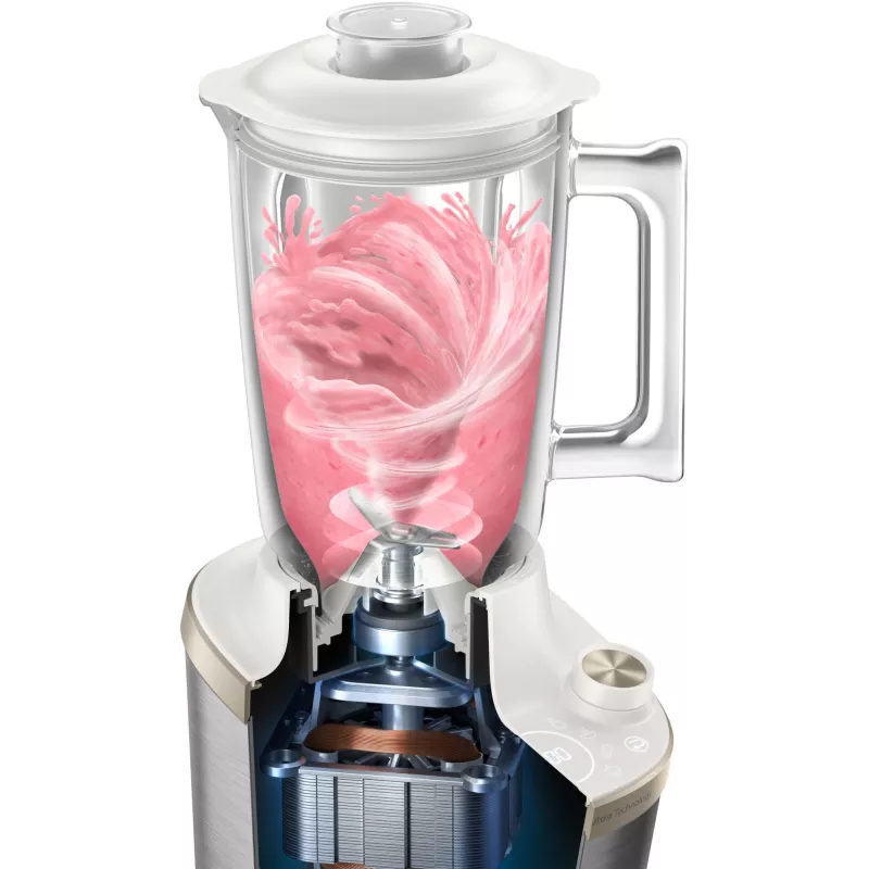 Tabletop blender , White/Stainless steel , Cord length 1 m , Non-slip feet Yes , Bowl capacity 2 L , 7xNumber of speeds , Pulse function Yes , Ice crushing Yes , Power 1500 W , Weight 4.53 kg