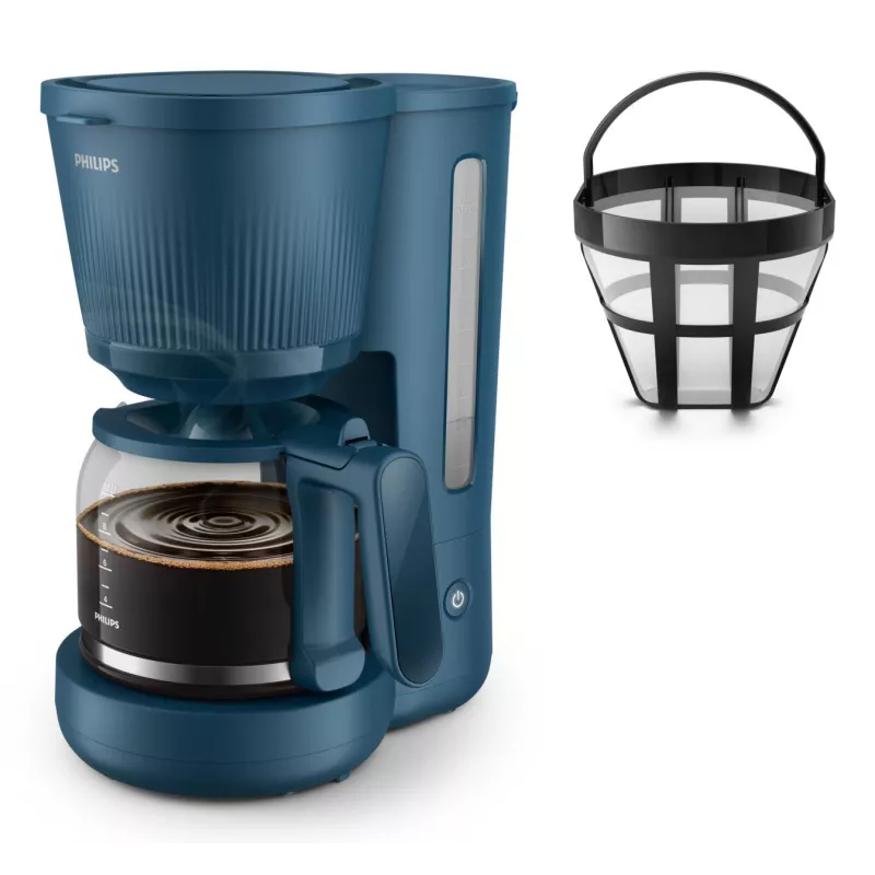 - PHILIPS HD7411/70. PRODUCT TYPE: DRIP COFFEE MAKER, COFFEE MAKER TYPE: MANUAL, WATER TANK CAPACITY: 1.32 L, COFFEE INPUT TYPE: GROUND COFFEE, RESERVOIR FOR BREWED COFFEE: JUG, CAPACITY IN CUPS: 10 CUPS. POWER: 1080 W. PRODUCT COLOUR: BLUE
