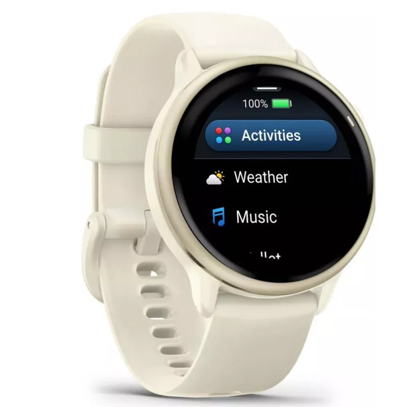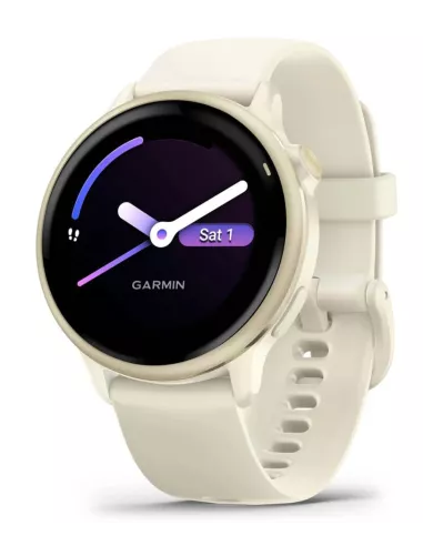 Vívoactive 6 , Screen 1.2" , Display technology AMOLED , Resolution 390 x 390 , Wireless connections WLAN/Bluetooth , Memory 8 GB , GPS , Colour Gold / White , Battery run time up to 264 hours , Dimensions 42.2 x 42.2 x 10.9 mm , Weight 0.023 kg