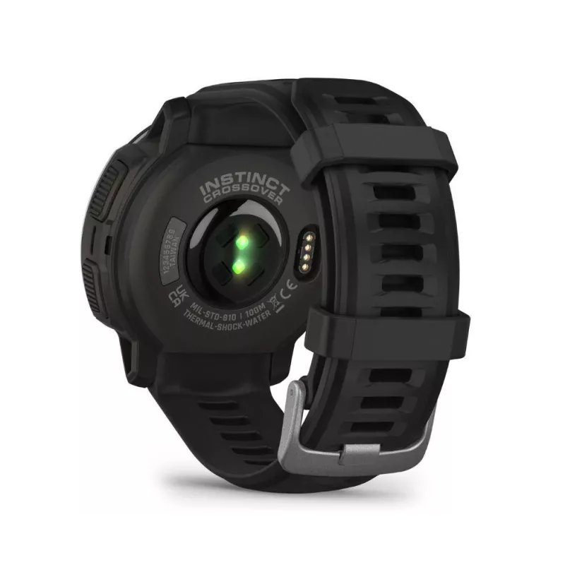 - GARMIN INSTINCT CROSSOVER - STANDARD EDITION. DISPLAY TECHNOLOGY: MIP, DISPLAY RESOLUTION: 176 X 176 PIXELS. GPS (SATELLITE). WEIGHT: 65 G. WATERPROOF UP TO: 100 M, BAND MATERIAL: SILICONE, BAND COLOUR: BLACK, BAND SIZE: ONE SIZE