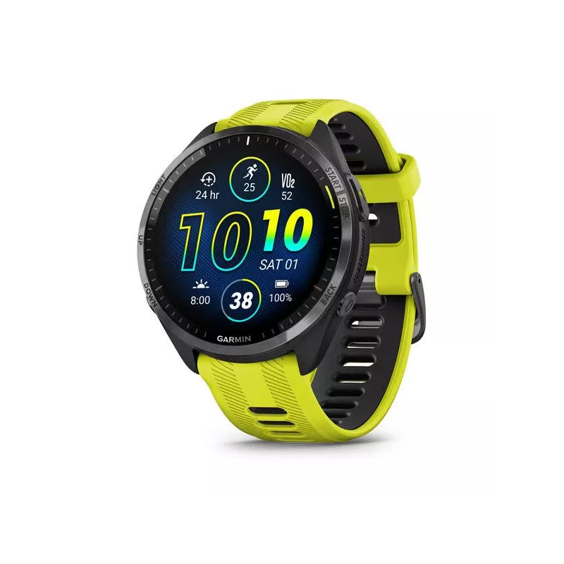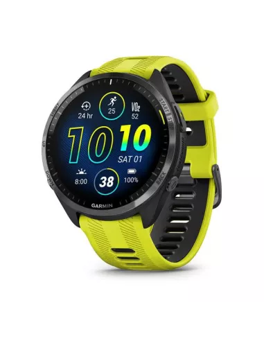 - GARMIN FORERUNNER 965. DISPLAY DIAGONAL: 3.56 CM (1.4"), DISPLAY TECHNOLOGY: AMOLED, DISPLAY RESOLUTION: 454 X 454 PIXELS, TOUCHSCREEN. FLASH MEMORY: 32 GB. WI-FI. GPS (SATELLITE). WEIGHT: 53 G. BAND MATERIAL: SILICONE, BAND COLOUR: YELLOW, BAND SIZE: ONE
