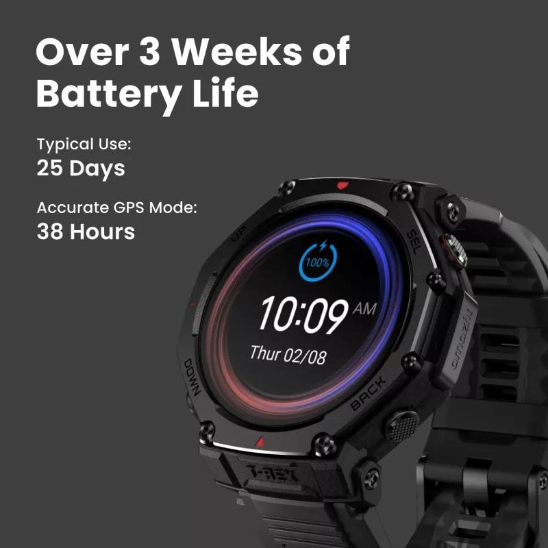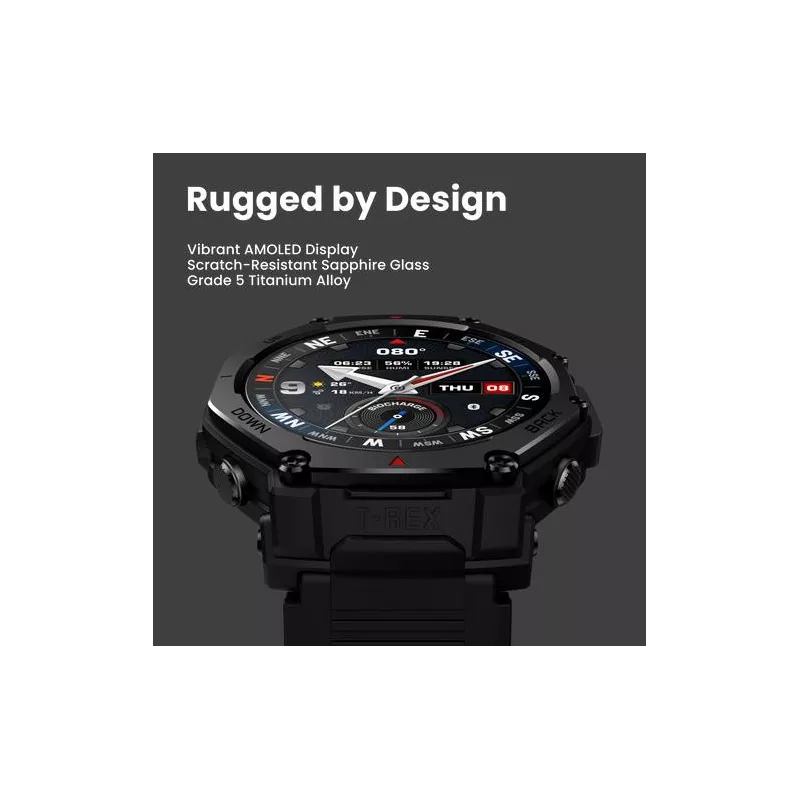 - AMAZFIT T-REX 3 PRO. DISPLAY DIAGONAL: 3.81 CM (1.5"), DISPLAY TECHNOLOGY: AMOLED, DISPLAY RESOLUTION: 480 X 480 PIXELS, TOUCHSCREEN. WI-FI. GPS (SATELLITE). BATTERY CAPACITY: 700 MAH. WEIGHT: 52 G. BAND MATERIAL: SILICONE, BAND COLOUR: BLACK, BAND SIZE: