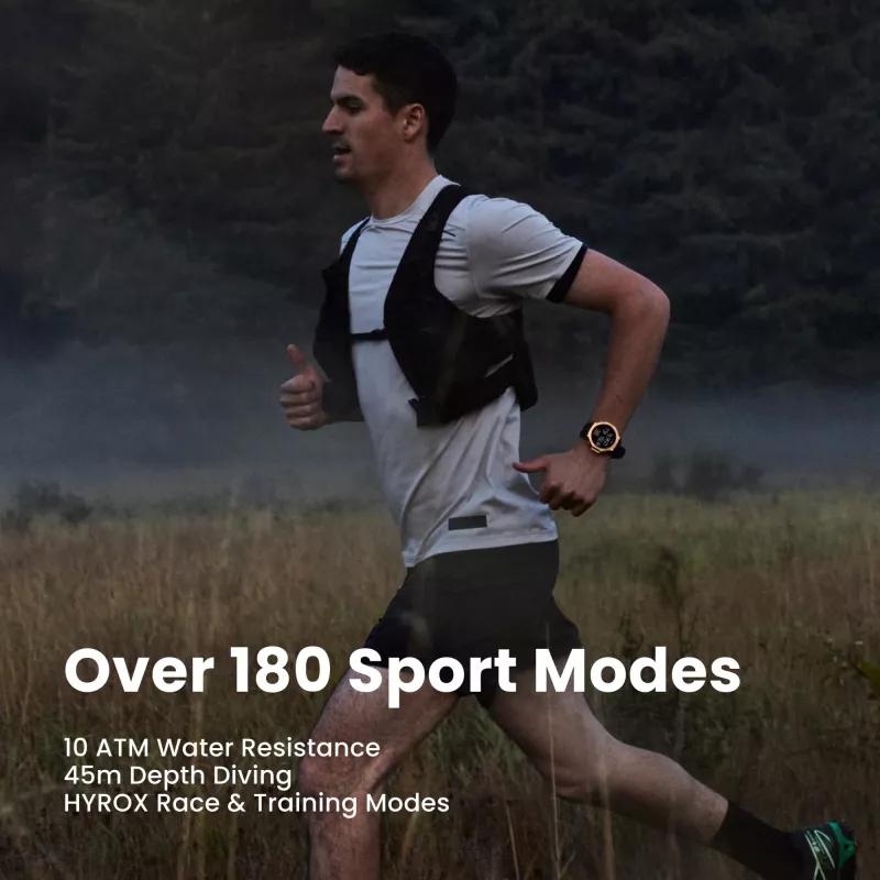 3.81 cm (1.5") , AMOLED , Brightness 3000 cd/m² , Display type Digital , Display resolution 480 x 480 pixels , Touchscreen Yes , Watch glass type Sapphire , Operating system installed Zepp OS , Band material Silicone , Band size One Size , Shape Round , Market positioning Sport watch , Watch case size 48 mm , Watch case colour Gold , Watch case material Polymer,Titanium , Band colour Black , Heart rate monitor Yes , Near Field Communication (NFC) Yes , Wi-Fi Yes , Bluetooth version 5.2 , Battery type Built-in battery , Battery capacity 700 mAh , Weight 52 g