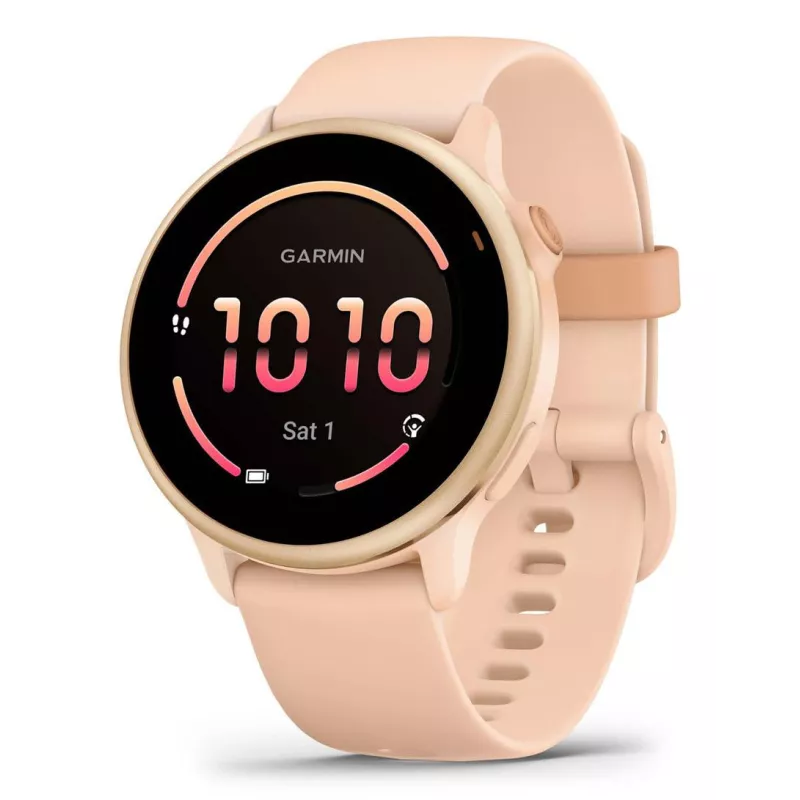 - GARMIN V VOACTIVE 6. DISPLAY DIAGONAL: 3.05 CM (1.2"), DISPLAY TECHNOLOGY: AMOLED, DISPLAY RESOLUTION: 390 X 390 PIXELS, TOUCHSCREEN. FLASH MEMORY: 8 GB. WI-FI. GPS (SATELLITE). WEIGHT: 23 G. BAND MATERIAL: SILICONE, BAND COLOUR: PINK, BAND SIZE: ONE SIZE