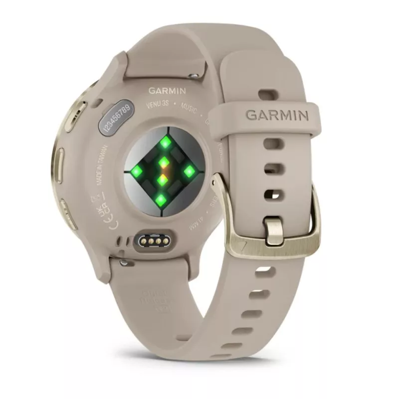 Venu 3S , 3.05 cm (1.2") , AMOLED , Display type Digital , Display resolution 390 x 390 pixels , Touchscreen Yes , Watch glass type Corning Gorilla Glass 3 , Band material Silicone , Shape Round , Market positioning Smartwatch , Watch case size 41 mm , Watch case colour Grey/Gold , Watch case material Polymer , Band colour Grey , Heart rate monitor Yes , Wi-Fi Yes , Battery type Built-in battery , Battery life 10 day(s) , Weight 40 g