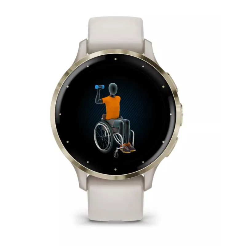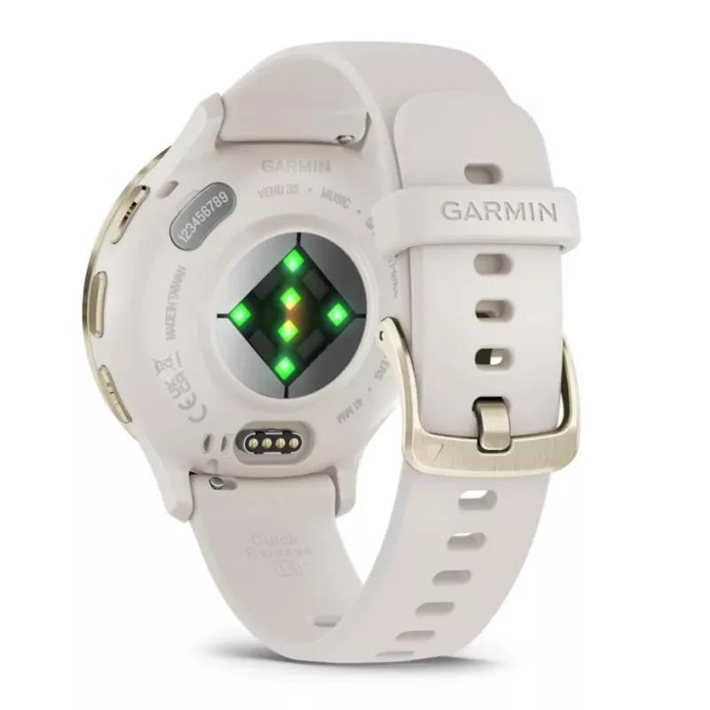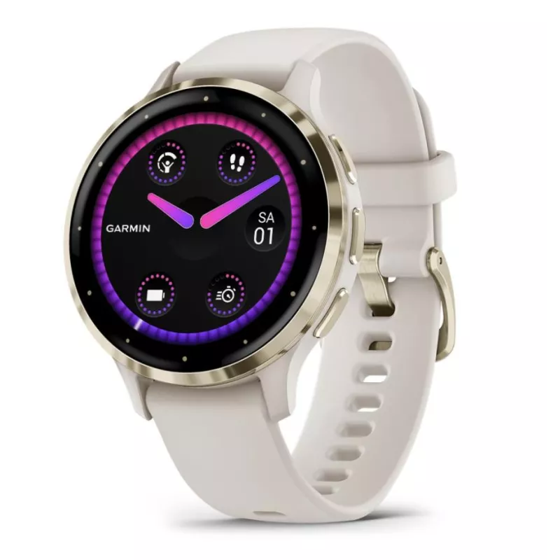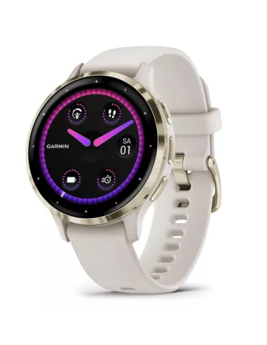 Venu 3S , AMOLED , 3.05 cm (1.2") , Display type Digital , Display resolution 390 x 390 pixels , Touchscreen Yes , Watch glass type Corning Gorilla Glass 3 , Flash memory 8 GB , Band material Silicone , Shape Round , Market positioning Smartwatch , Watch case size 41 mm , Watch case colour Gold/Ivory , Watch case material Polymer , Band colour Ivory , Heart rate monitor Yes , Wi-Fi Yes , Battery type Built-in battery , Battery life 10 day(s) , Weight 40 g