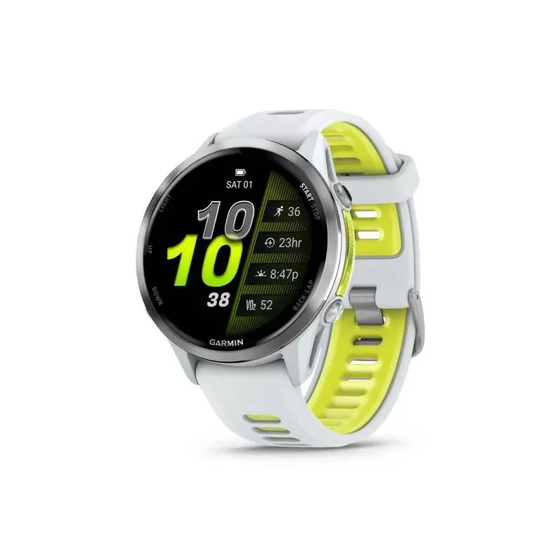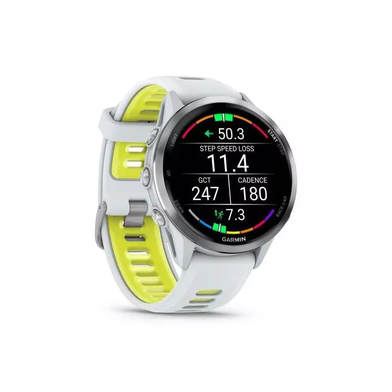 - GARMIN FORERUNNER 970. DISPLAY DIAGONAL: 3.56 CM (1.4"), DISPLAY TECHNOLOGY: AMOLED, DISPLAY RESOLUTION: 454 X 454 PIXELS, TOUCHSCREEN. WI-FI. GPS (SATELLITE). WEIGHT: 56 G. BAND MATERIAL: SILICONE, BAND COLOUR: WHITE, YELLOW, BAND SIZE: S