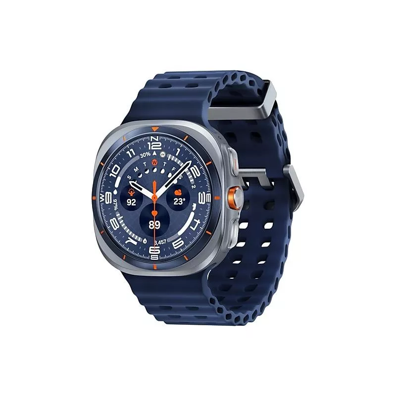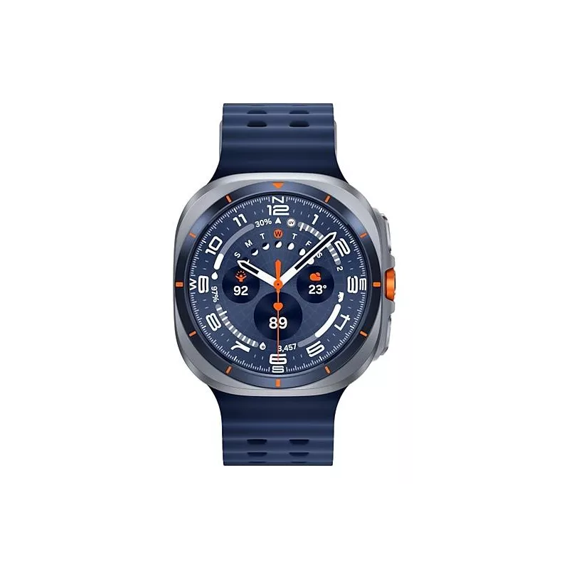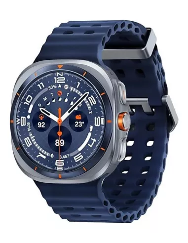 Galaxy Watch Ultra (2025) , 3.81 cm (1.5") , AMOLED , Brightness 600 cd/m² , Display type Digital , Display resolution 480 x 480 pixels , Touchscreen Yes , Operating system installed Wear OS , RAM capacity 2000 MB , Flash memory 64 GB , Shape Round , Market positioning Smartwatch , Watch case size 47 mm , Watch case colour Titanium , Watch case material Titanium , Band colour Blue , Heart rate monitor Yes , Near Field Communication (NFC) Yes , Wi-Fi Yes , Bluetooth version 5.3 , Battery type Built-in battery , Battery capacity 590 mAh , Charging time 1.6 h , Weight 60.5 g