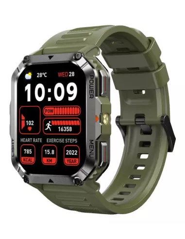 5.11 cm (2.01") , TFT , Brightness 800 cd/m² , Display type Digital , Display resolution 280 x 320 pixels , Touchscreen Yes , RAM capacity 0.16 MB , Flash memory 0.128 GB , Band size One Size , Shape Rectangular , Market positioning Smartwatch , Watch case colour Green , Band colour Green , Heart rate monitor Yes , Bluetooth version 5.3 , Battery type Built-in battery , Battery capacity 900 mAh , Battery life (max) 480 h , Battery life 20 day(s) , Charging time 2.5 h , Operating temperature (T-T) -20 - 60 °C , Weight 43.9 g