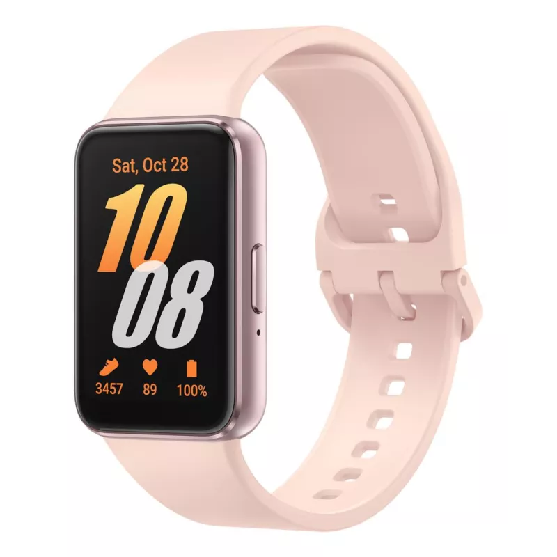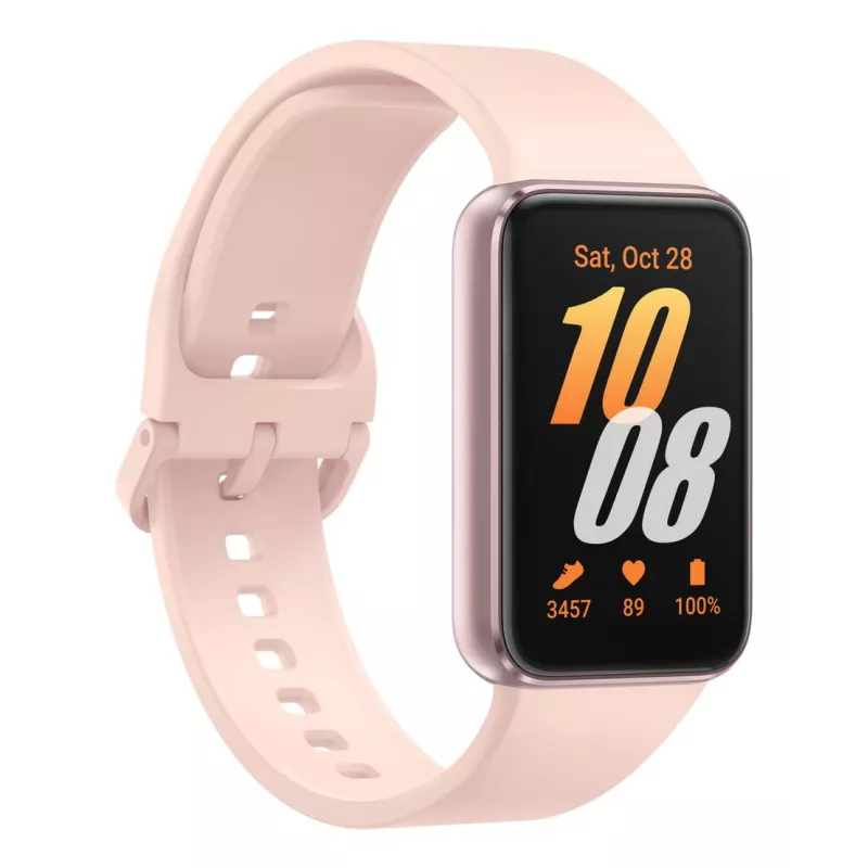 Galaxy Fit3 , 4.06 cm (1.6") , AMOLED , Display type Digital , Display resolution 256 x 402 pixels , Touchscreen Yes , Operating system installed FreeRTOS , RAM capacity 16 MB , Flash memory 0.256 GB , Shape Rectangular , Watch case size 40 mm , Watch case colour Pink gold , Watch case material Aluminium , Band colour Pink gold , Heart rate monitor Yes , Bluetooth version 5.3 , Battery capacity 208 mAh , Battery life (max) 312 h , Weight 18.5 g