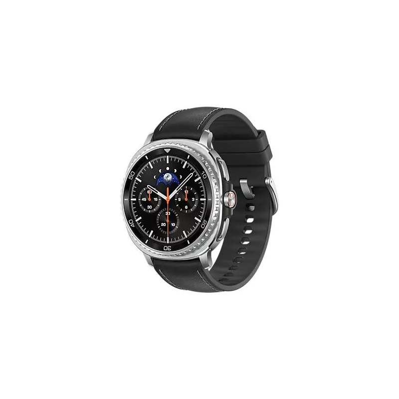 GALAXY WATCH8 , 3.3 cm (1.3") , AMOLED , Brightness 600 cd/m² , Display type Digital , Display resolution 438 x 438 pixels , Touchscreen Yes , Operating system installed Wear OS , RAM capacity 2000 MB , Flash memory 64 GB , Shape Round , Market positioning Smartwatch , Watch case size 46 mm , Watch case colour Silver , Watch case material Aluminium , Band colour Black , Heart rate monitor Yes , Near Field Communication (NFC) Yes , Wi-Fi Yes , Bluetooth version 5.3 , Battery type Built-in battery , Battery capacity 445 mAh , Battery life (max) 30 h , Charging time 1.3 h , Weight 63.5 g