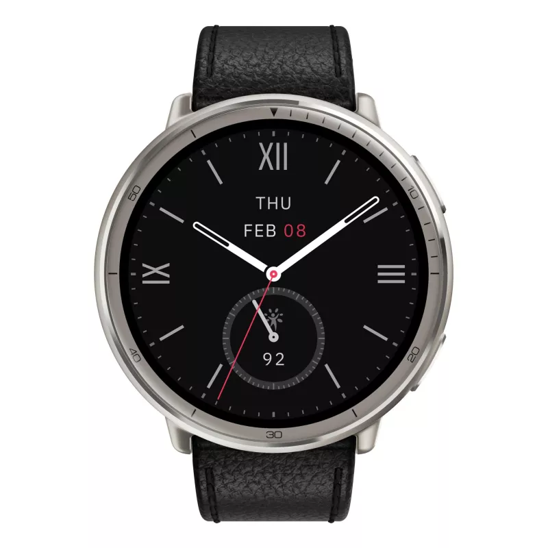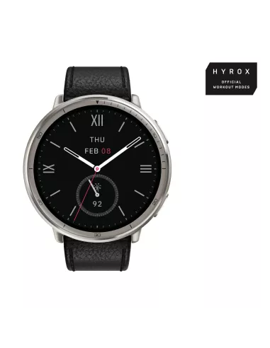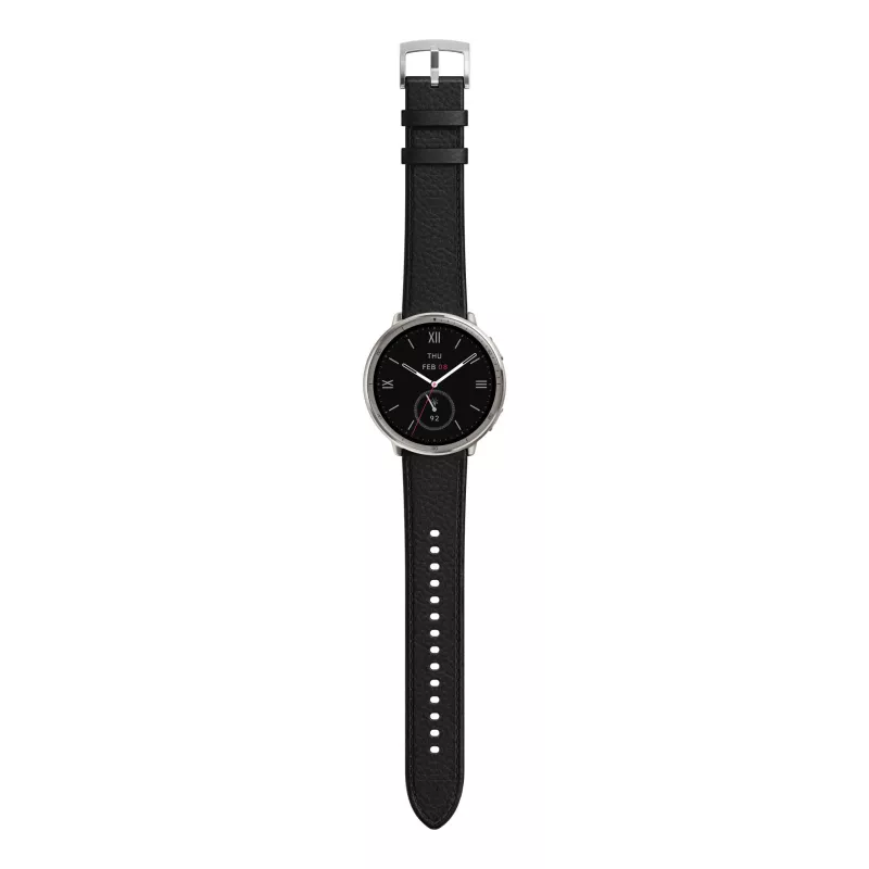- AMAZFIT W2433EU1N. DISPLAY DIAGONAL: 3.35 CM (1.32"), DISPLAY TECHNOLOGY: AMOLED, DISPLAY RESOLUTION: 466 X 466 PIXELS, TOUCHSCREEN. BATTERY CAPACITY: 270 MAH. WEIGHT: 29.5 G. BAND MATERIAL: LEATHER, BAND COLOUR: BLACK. OPERATING SYSTEM INSTALLED: ZEPP OS
