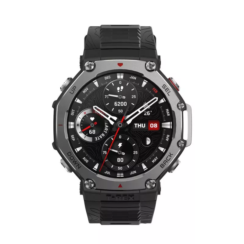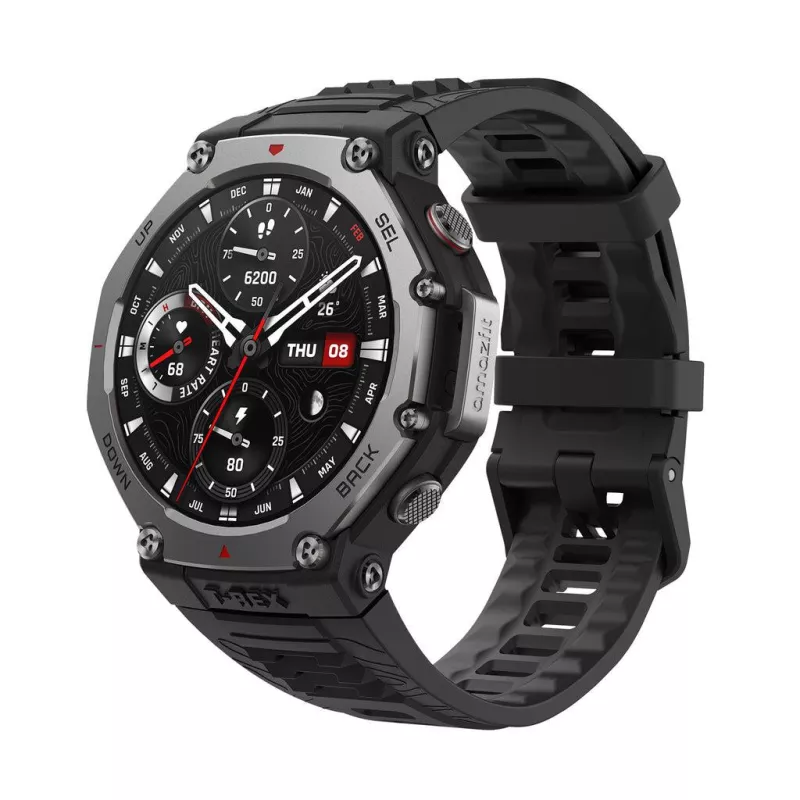 - AMAZFIT T-REX 3. DISPLAY DIAGONAL: 3.81 CM (1.5"), DISPLAY TECHNOLOGY: AMOLED, DISPLAY RESOLUTION: 480 X 480 PIXELS, TOUCHSCREEN. WI-FI. GPS (SATELLITE). BATTERY CAPACITY: 700 MAH. WEIGHT: 68.3 G. WATERPROOF UP TO: 100 M, BAND MATERIAL: SILICONE, BAND COL