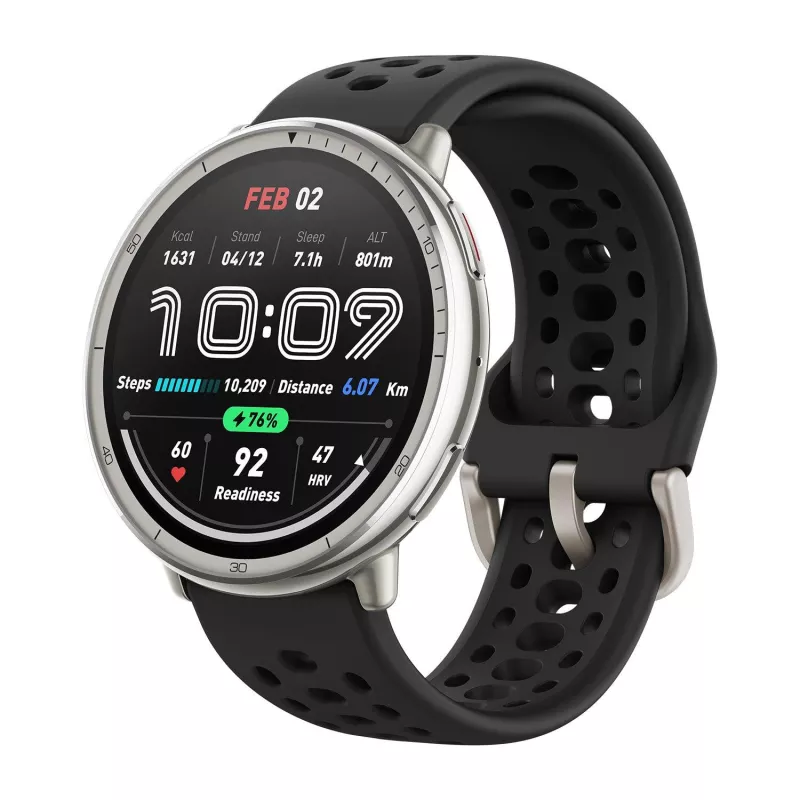Amazfit Active 2 , 3.35 cm (1.32") , AMOLED , Display type Digital , Display resolution 466 x 466 pixels , Touchscreen Yes , Operating system installed Zepp OS , Band material Silicone , Band size One Size , Shape Round , Market positioning Smartwatch , Watch case size 43.9 mm , Watch case colour Silver , Watch case material Polymer,Stainless steel,Tempered glass , Band colour Black , Heart rate monitor Yes , Bluetooth version 5.2 , Battery type Built-in battery , Battery capacity 270 mAh , Battery life (max) 456 h , Battery life 10 day(s) , Charging time 2 h , Weight 29.5 g