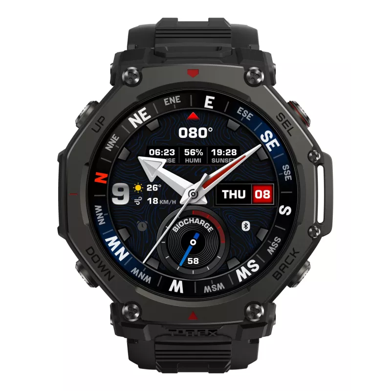 - AMAZFIT T-REX 3 PRO. DISPLAY DIAGONAL: 3.81 CM (1.5"), DISPLAY TECHNOLOGY: AMOLED, DISPLAY RESOLUTION: 480 X 480 PIXELS, TOUCHSCREEN. WI-FI. GPS (SATELLITE). BATTERY CAPACITY: 700 MAH. WEIGHT: 52 G. WATERPROOF UP TO: 45 M, BAND MATERIAL: SILICONE, BAND CO