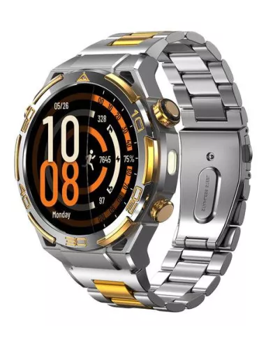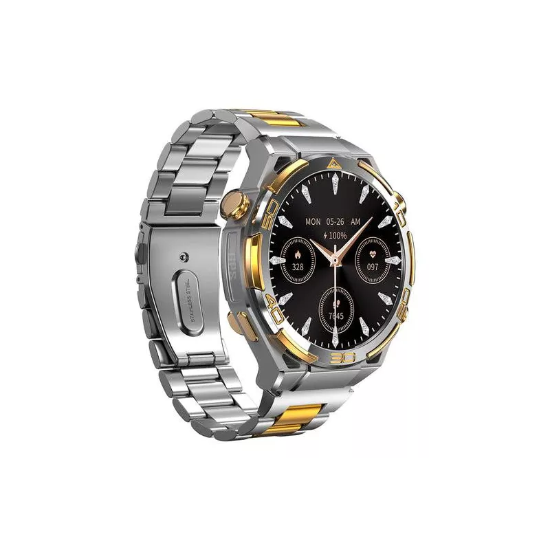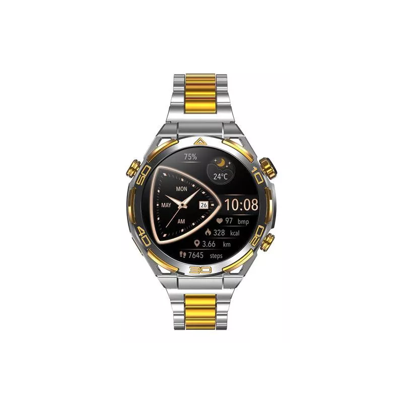 W90 Pro , 3.63 cm (1.43") , AMOLED , Display type Digital , Display resolution 466 x 466 pixels , Touchscreen Yes , RAM capacity 0.48 MB , Band size One Size , Shape Round , Market positioning Smartwatch , Watch case size 48.6 mm , Watch case colour Silver/Gold , Watch case material Zinc alloy , Band colour Silver/Gold , Heart rate monitor Yes , Bluetooth version 5.3 , Battery type Built-in battery , Battery capacity 900 mAh , Battery life (max) 480 h , Battery life 20 day(s) , Weight 150 g