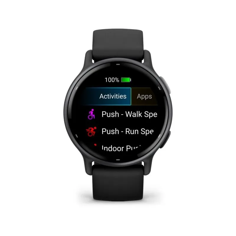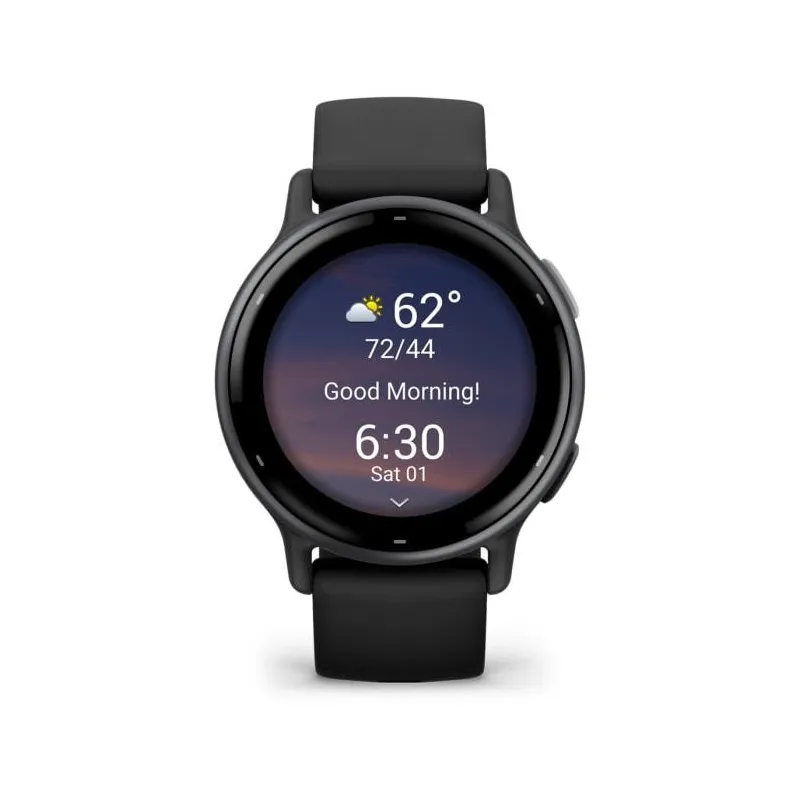 vívoactive 5 , AMOLED , 3.05 cm (1.2") , Display type Digital , Display resolution 390 x 390 pixels , Touchscreen Yes , Watch glass type Corning Gorilla Glass 3 , Flash memory 4 GB , Band material Silicone , Band size One Size , Shape Round , Market positioning Sport watch , Watch case size 42 mm , Watch case colour Black , Watch case material Aluminium,Polymer , Band colour Black , Heart rate monitor Yes , Near Field Communication (NFC) Yes , Wi-Fi Yes , Battery type Built-in battery , Battery life (max) 264 h , Battery life 11 day(s) , Operating temperature (T-T) -20 - 60 °C , Weight 36 g