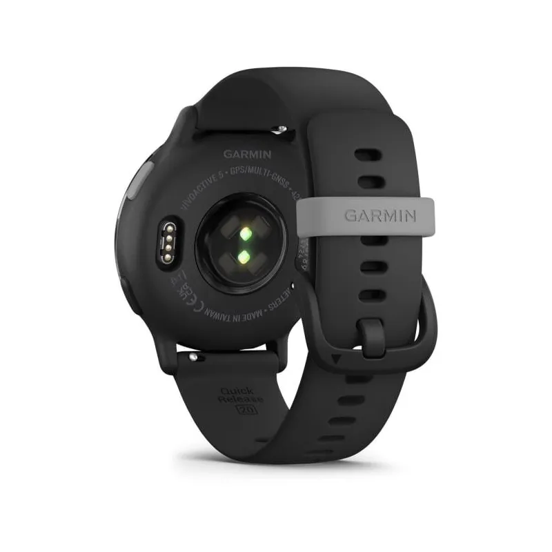 - GARMIN VIVOACTIVE 5. DISPLAY DIAGONAL: 3.05 CM (1.2"), DISPLAY TECHNOLOGY: AMOLED, DISPLAY RESOLUTION: 390 X 390 PIXELS, TOUCHSCREEN. FLASH MEMORY: 4 GB. WI-FI. GPS (SATELLITE). WEIGHT: 36 G. BAND MATERIAL: SILICONE, BAND COLOUR: BLACK, BAND SIZE: ONE SIZ