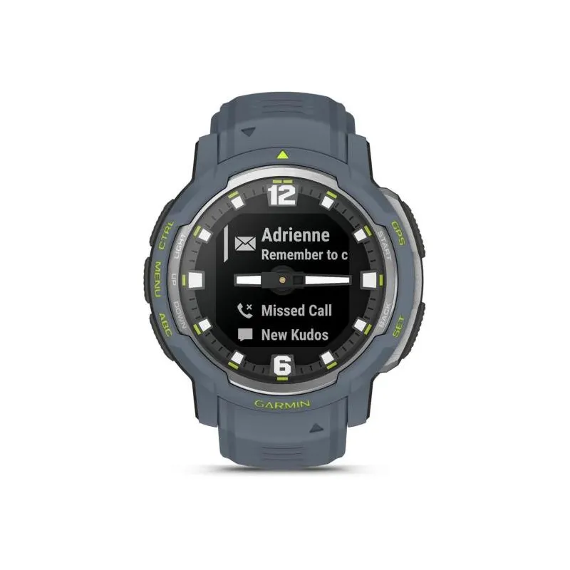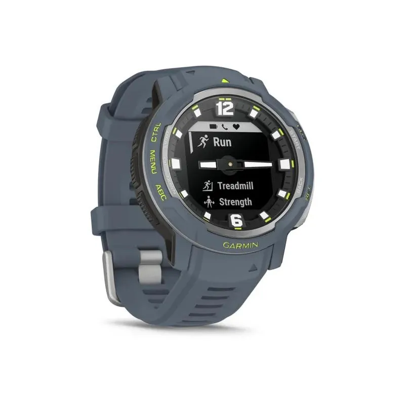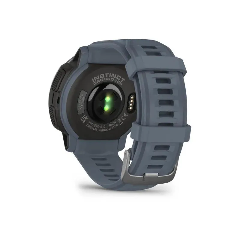 - GARMIN INSTINCT CROSSOVER - STANDARD EDITION. DISPLAY DIAGONAL: 2.29 CM (0.9"), DISPLAY TECHNOLOGY: MIP, DISPLAY RESOLUTION: 176 X 176 PIXELS. GPS (SATELLITE). WEIGHT: 65 G. WATERPROOF UP TO: 100 M, BAND MATERIAL: SILICONE, BAND COLOUR: BLUE, BAND SIZE: O