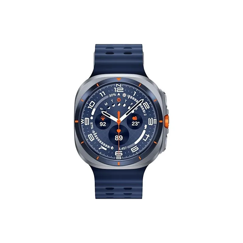Galaxy Watch Ultra (2025) , 3.81 cm (1.5") , AMOLED , Brightness 600 cd/m² , Display type Digital , Display resolution 480 x 480 pixels , Touchscreen Yes , Operating system installed Wear OS , RAM capacity 2000 MB , Flash memory 64 GB , Shape Round , Market positioning Smartwatch , Watch case size 47 mm , Watch case colour Titanium , Watch case material Titanium , Band colour Blue , Heart rate monitor Yes , Near Field Communication (NFC) Yes , Wi-Fi Yes , Bluetooth version 5.3 , Battery type Built-in battery , Battery capacity 590 mAh , Charging time 1.6 h , Weight 60.5 g