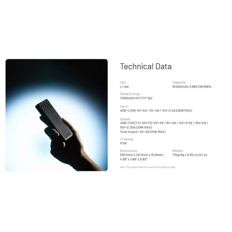 Quick Charge , Battery Lithium-Ion rechargeable , Powerbank capacity 10000 mAh , Product Net Weight 0.17 kg