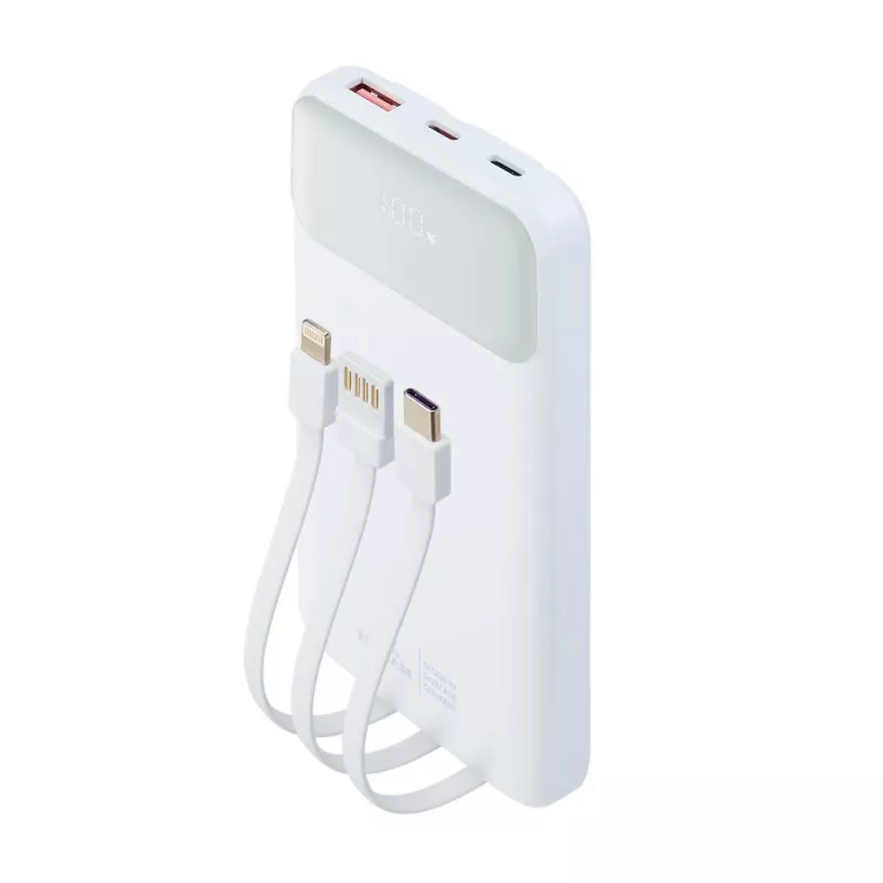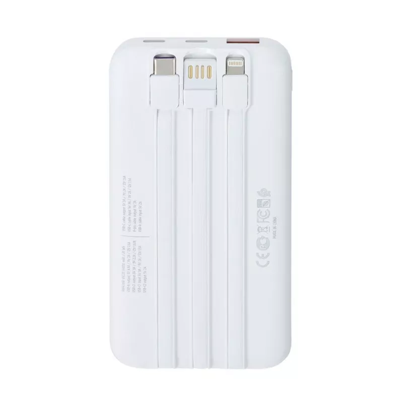 Battery Rechargeable , Powerbank capacity 10000 mAh , Battery capacity 10000 mAh , Capacity 37 Wh , Colour White , Dimensions 142 x 68 x 18 mm , Product Net Weight 0.28 kg