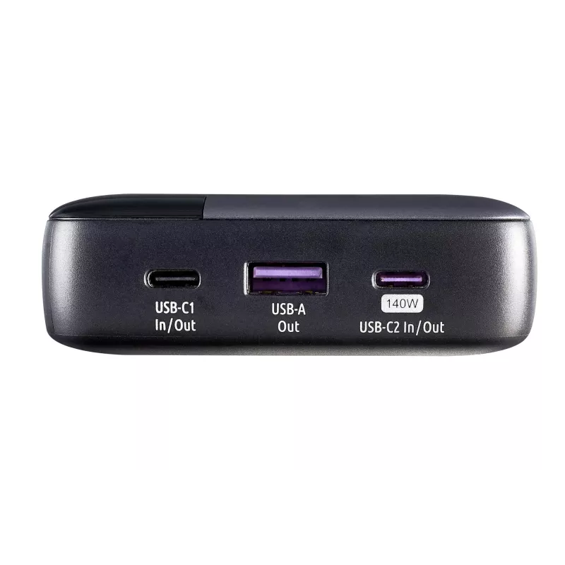 Lithium-Ion (Li-Ion) , Capacity 25000 mAh , Fast charging Yes , USB Power Delivery up to 140 W , 3xNumber of simultaneously connected devices (max) , Colour Black/Grey , Charger compatibility Universal , Built-in display Yes , Total output power 140 W , Weight 516 g , Cables included USB Type-C to USB Type-C , Travel pouch Yes , Product Net Weight 0.516 kg