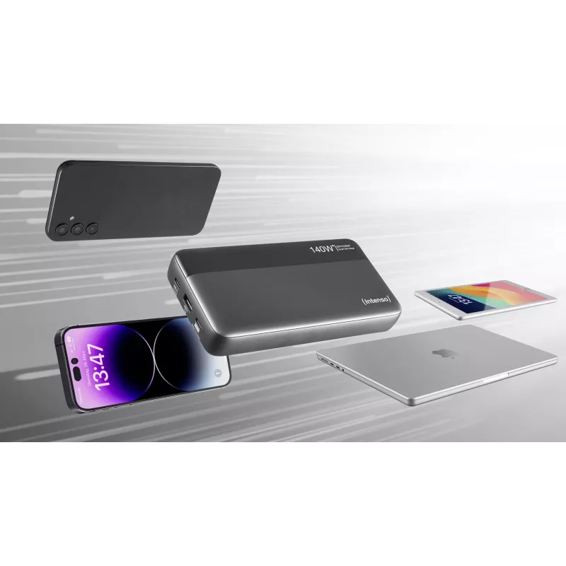- INTENSO 7350060. BATTERY CAPACITY: 25000 MAH, BATTERY TECHNOLOGY: LITHIUM-ION (LI-ION), FAST CHARGING TECHNOLOGY: POWER DELIVERY. USB TYPE-A OUTPUT PORTS: 1, USB TYPE-C PORTS QUANTITY: 2. TOTAL OUTPUT POWER: 140 W. PRODUCT COLOUR: BLACK, GREY