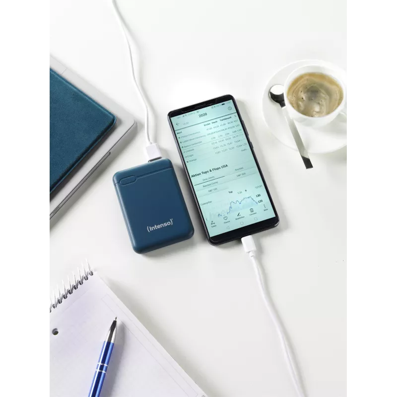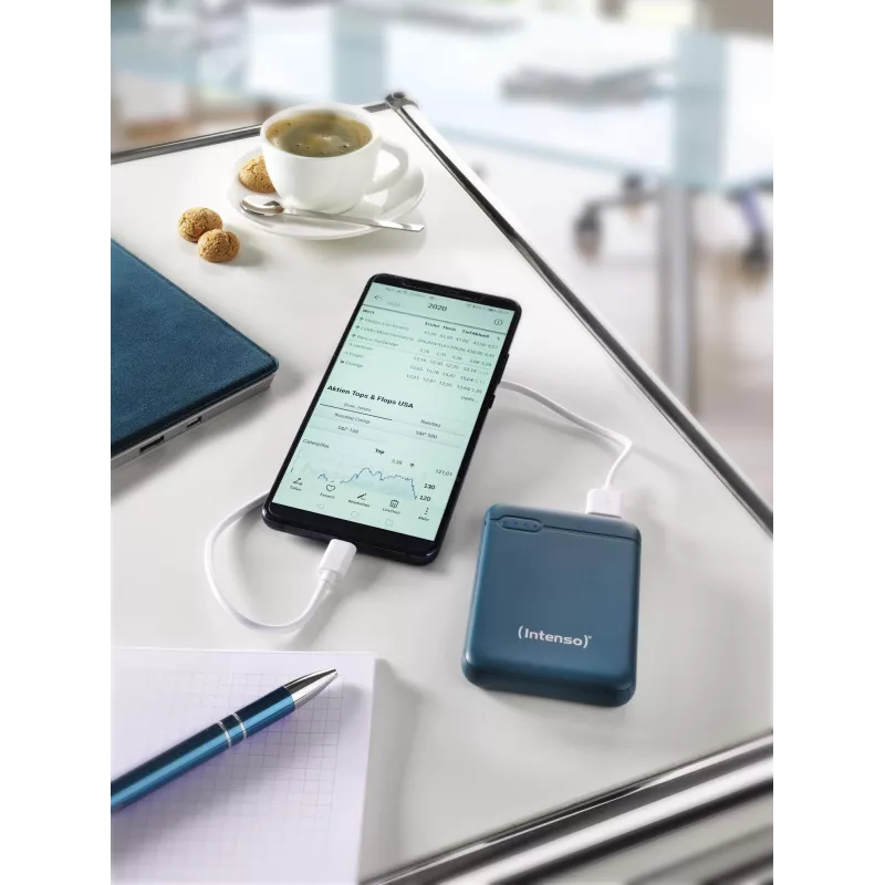 - INTENSO XS5000. BATTERY CAPACITY: 5000 MAH, BATTERY TECHNOLOGY: LITHIUM POLYMER (LIPO). USB TYPE-A OUTPUT PORTS: 1, USB TYPE-C PORTS QUANTITY: 1. OUTPUT CURRENT: 2.1 A. PRODUCT COLOUR: PETROL COLOUR