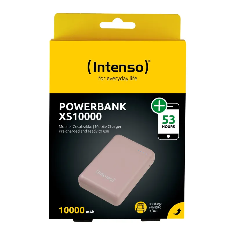 - INTENSO XS10000. BATTERY CAPACITY: 10000 MAH, BATTERY TECHNOLOGY: LITHIUM POLYMER (LIPO). USB TYPE-A OUTPUT PORTS: 1, USB TYPE-C PORTS QUANTITY: 1. OUTPUT CURRENT: 3.1 A. PRODUCT COLOUR: ROSE