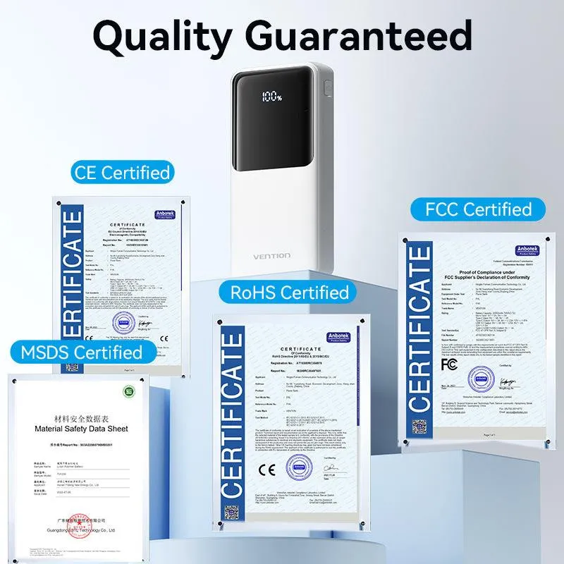- VENTION FHPB0. BATTERY CAPACITY: 20000 MAH, BATTERY VOLTAGE: 3.7 V. USB TYPE-A OUTPUT PORTS: 2, USB TYPE-C PORTS QUANTITY: 1. TOTAL OUTPUT POWER: 22.5 W. PRODUCT COLOUR: BLACK