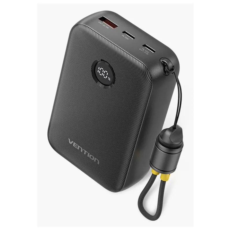 - VENTION 20000MAH POWER BANK 22.5W. BATTERY CAPACITY: 20000 MAH, BATTERY VOLTAGE: 3.85 V. USB TYPE-A OUTPUT PORTS: 1, USB TYPE-C PORTS QUANTITY: 2. PRODUCT COLOUR: BLACK