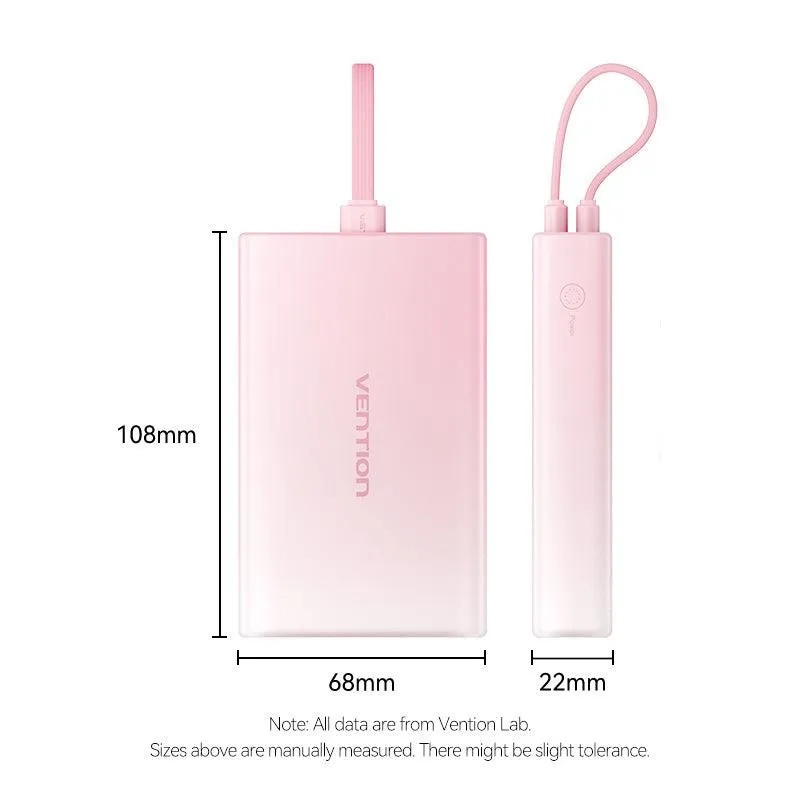 - VENTION FHZL0. BATTERY CAPACITY: 10000 MAH, BATTERY VOLTAGE: 3.85 V. USB TYPE-A OUTPUT PORTS: 1, USB TYPE-C PORTS QUANTITY: 1. OUTPUT CURRENT: 3 A. PRODUCT COLOUR: BLUE